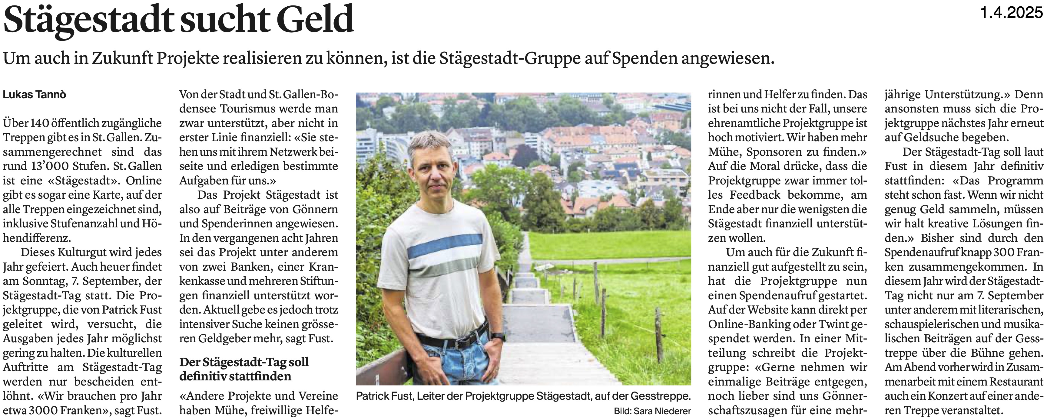 - «Stägestadt braucht Geld» – St.Galler Tagblatt, 1.4.2025